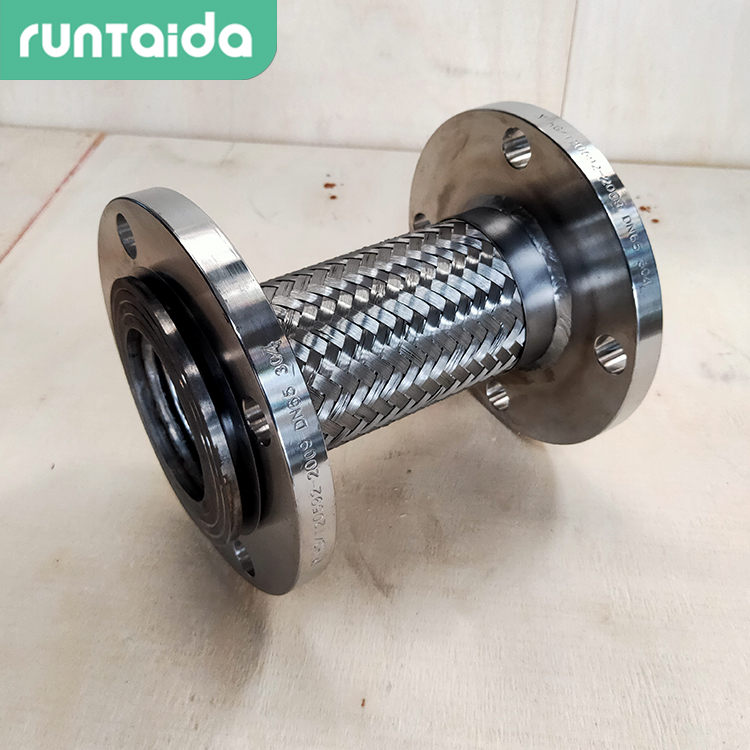 法蘭盤式:通徑為25毫米以上的金屬軟管的接頭,在承受一般工作壓力的情況下,以法蘭盤式為主,它以榫槽配合的形式進(jìn)行密封。可沿徑向轉(zhuǎn)動,也可沿軸向滑動的活套法蘭盤在緊固螺栓拉力的作用下連接兩體。該結(jié)構(gòu)密封性能良好,但加工難度大,密封面容易碰傷。在需要快卸的特殊場合,可以將固緊螺栓通過的孔劃開,制成快卸式法蘭盤。